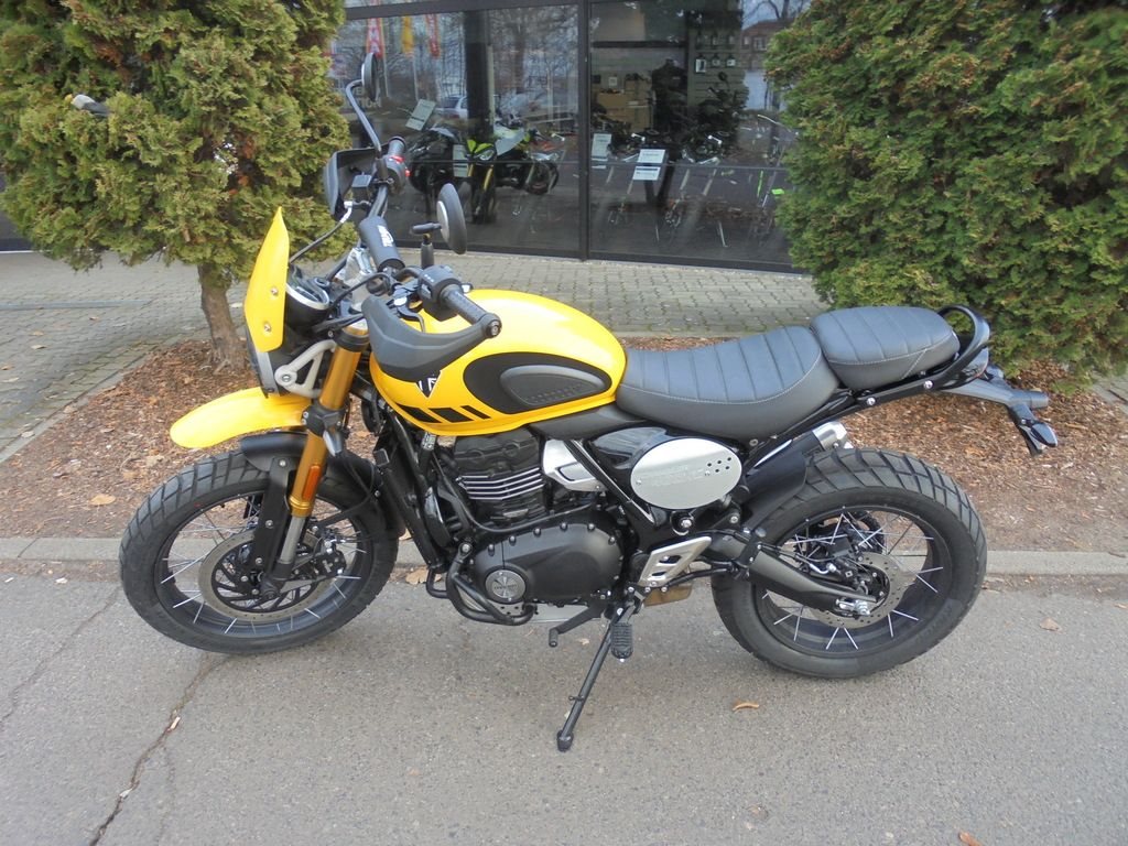 Die Triumph Scrambler 400 XC ist ein Scrambler-Motorrad mit einer Kombination aus klassischem Design und moderner Technik. Hier sind einige Highlights ihrer Ausstattung: