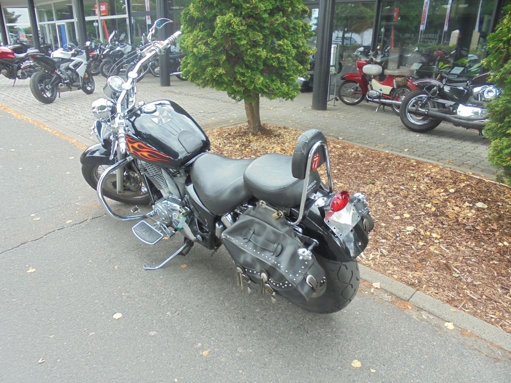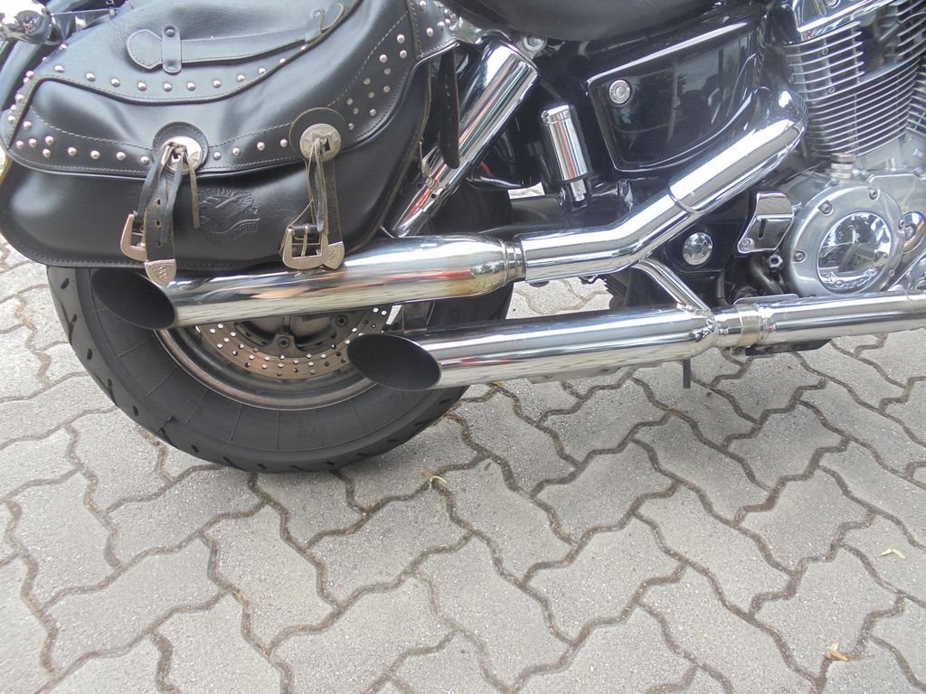 Gut erhaltene Honda VT 1100 aus 1. Hand mit aktuelem TÜV, Sportauspuff, Fehling Lenker(ABE), Seiten-Ledertaschen, Sissybar und Motorschutzbügel.